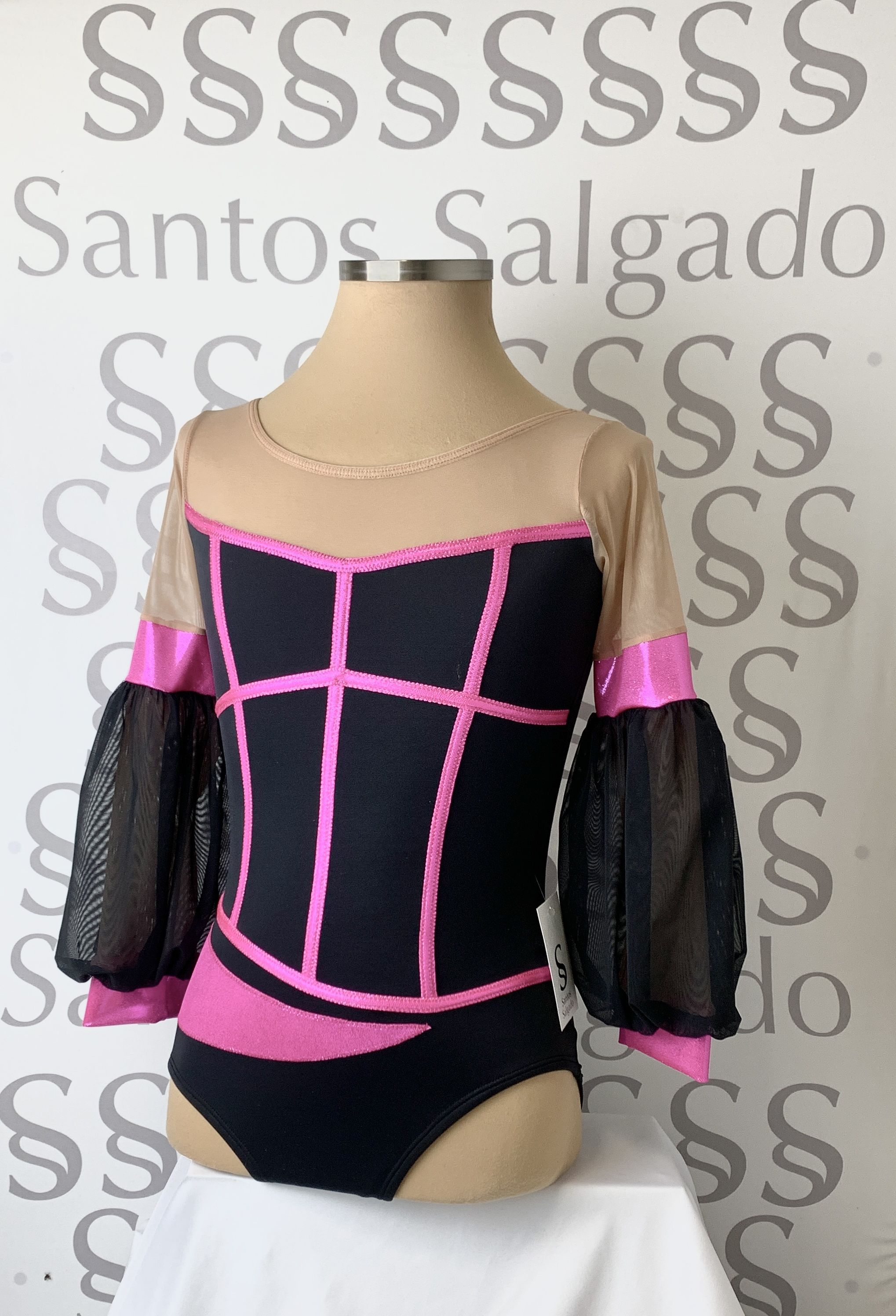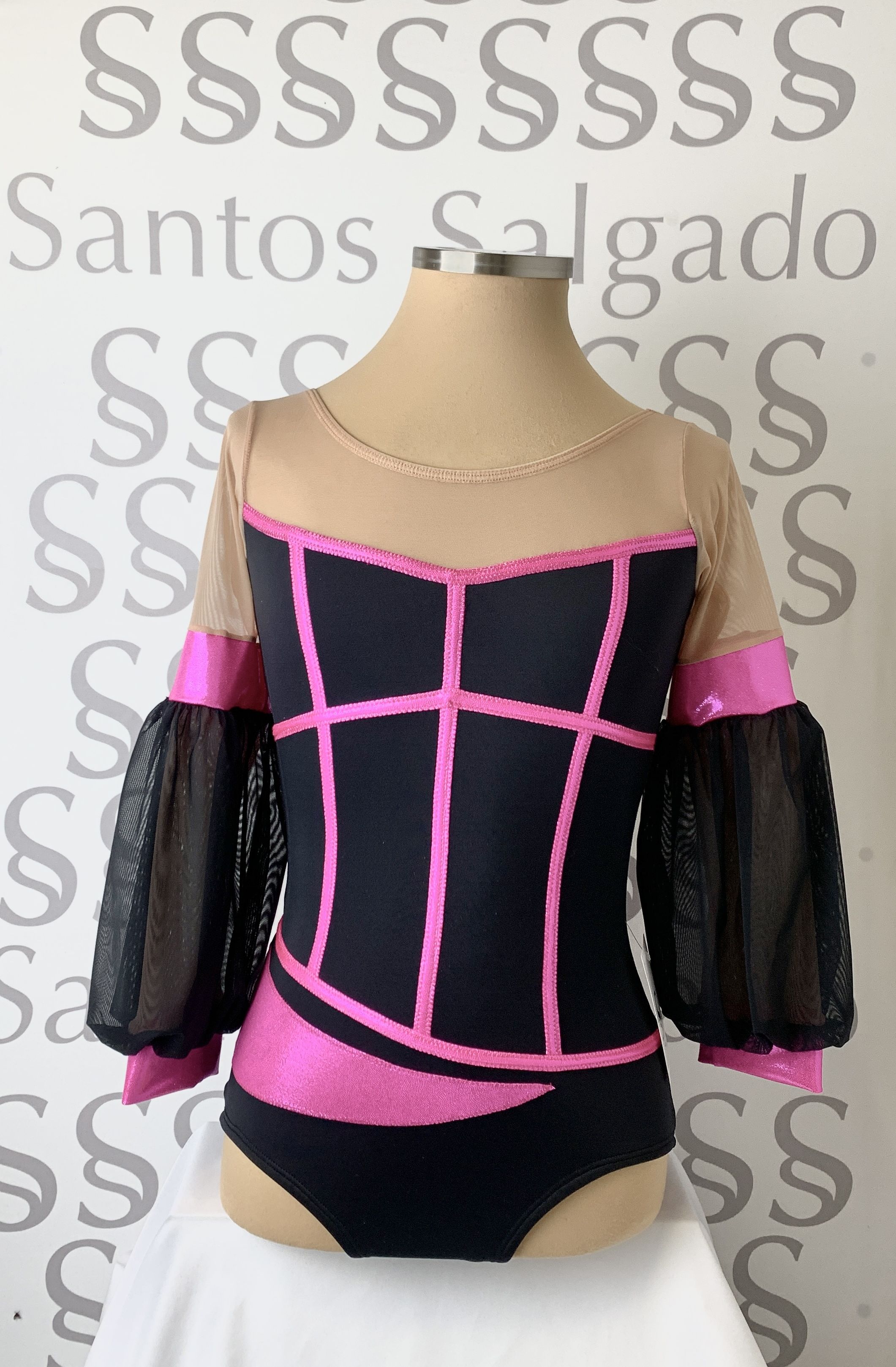 Body negro con parte de arriba transparente y mangas 3/4 abullonadas.