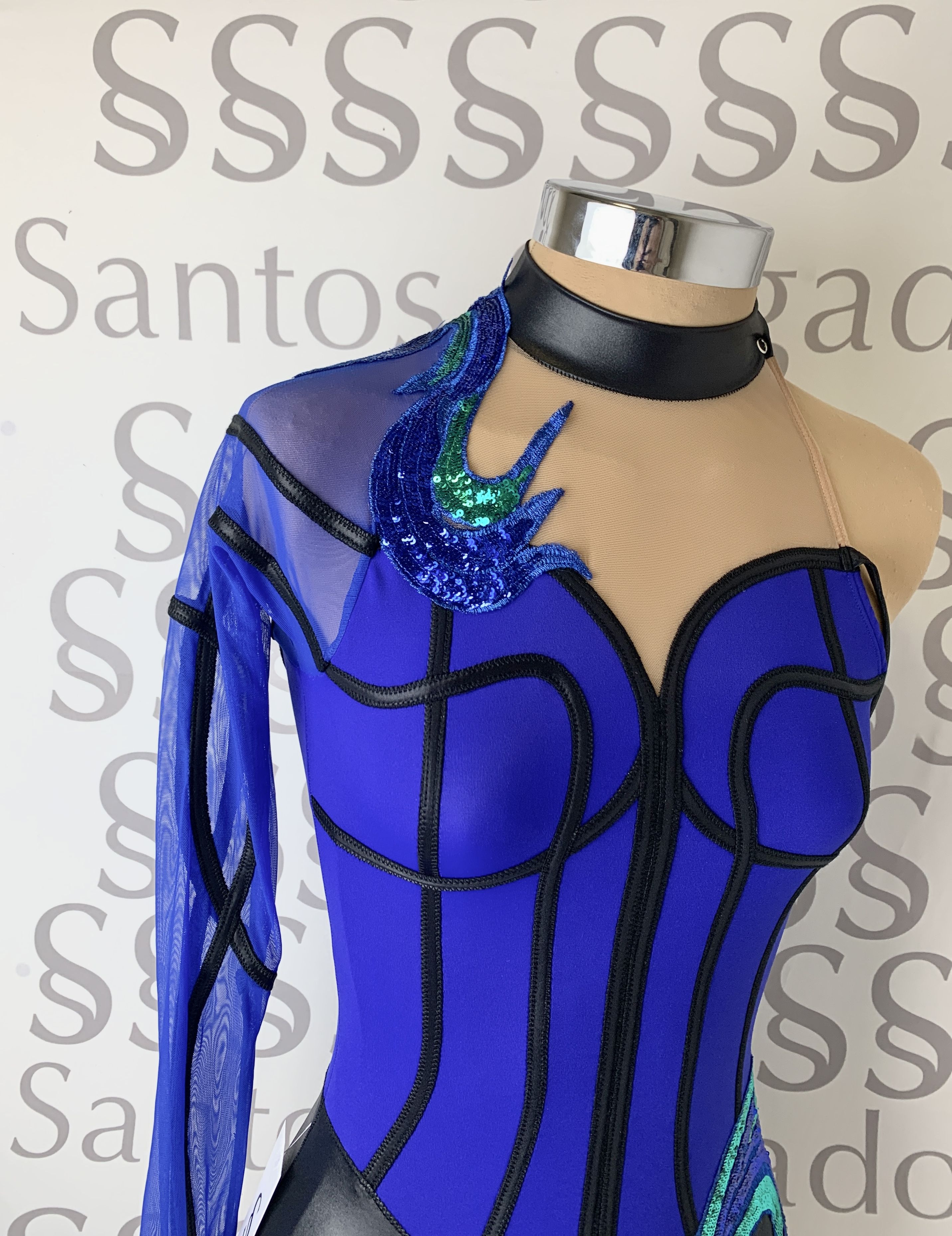 Detalle de aplicaciones a tono en lentejuela en hombro y lateral.