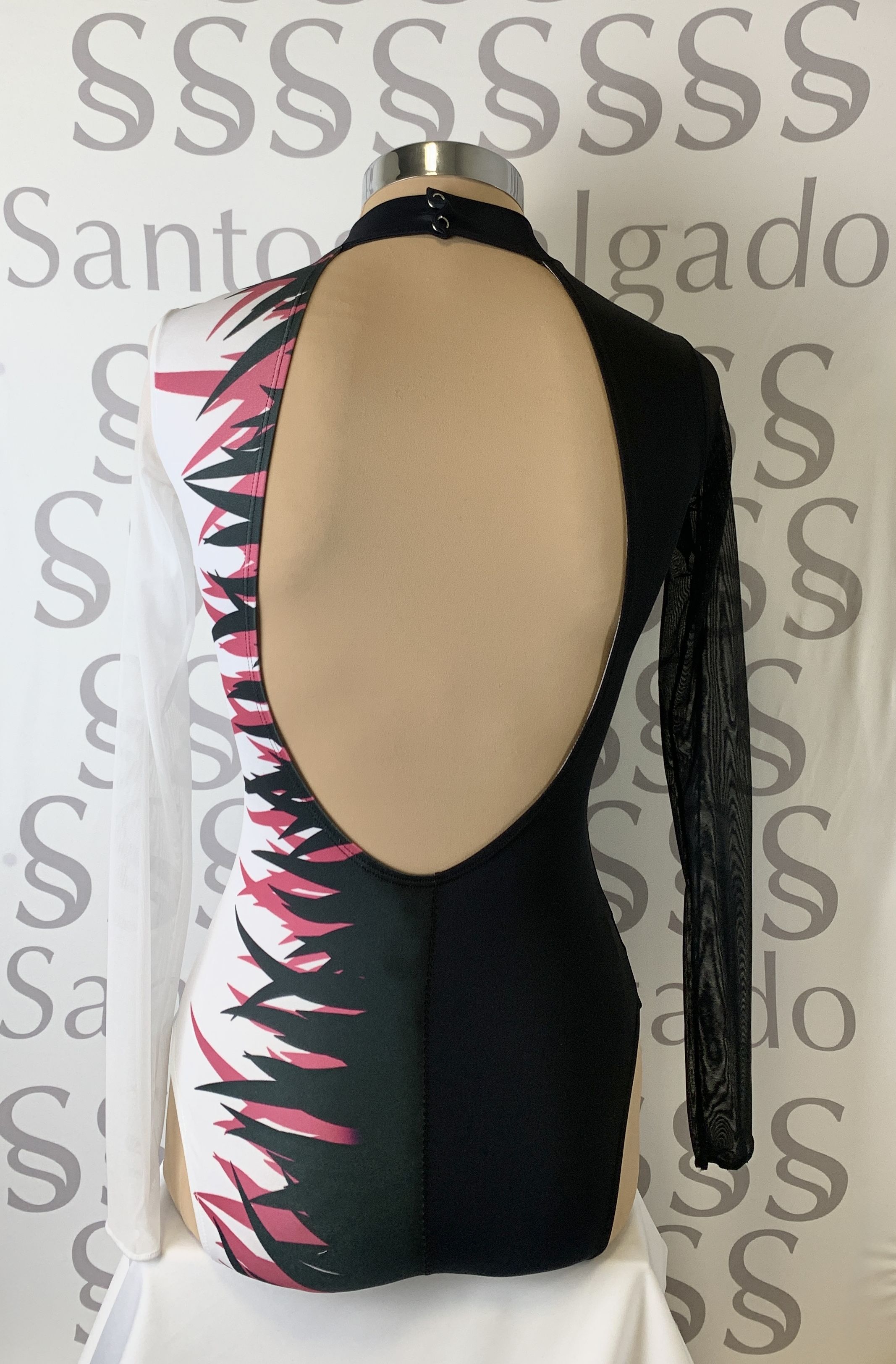 Body de manga larga de gasa mitad negro y mitad sublimado.
