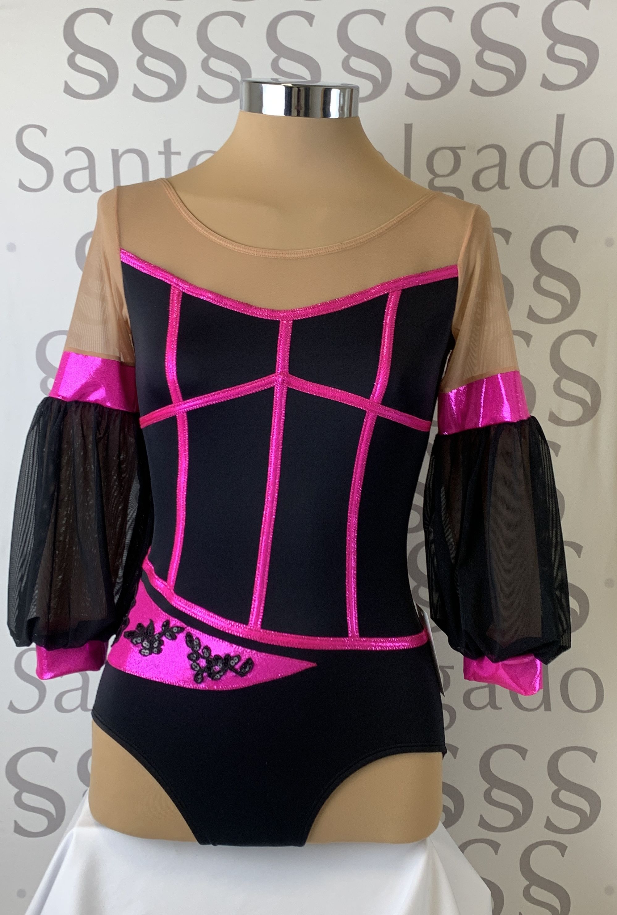 Body negro con parte de arriba transparente y mangas 3/4 abullonadas.