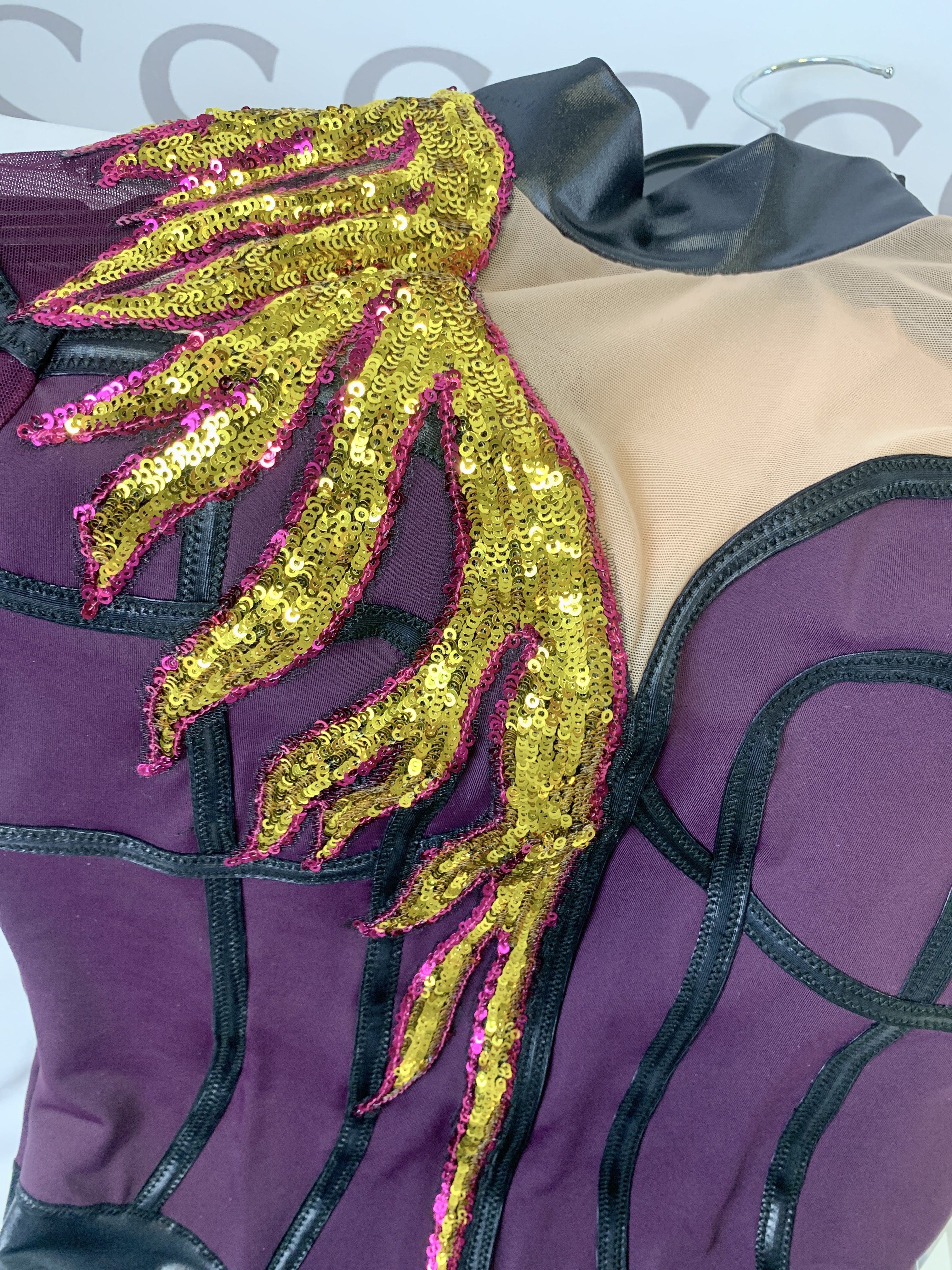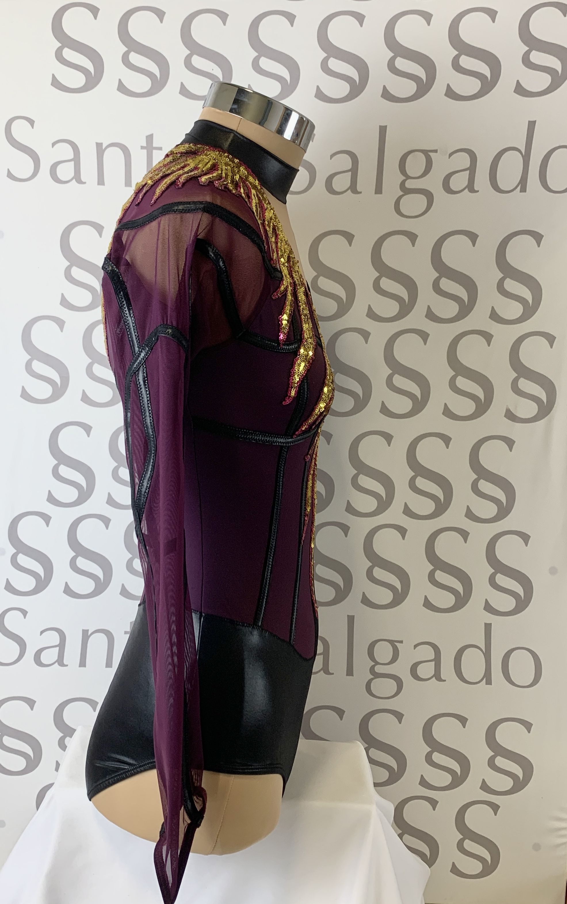 Detalle de aplicaciones a tono simulando fuego en lentejuela en hombro