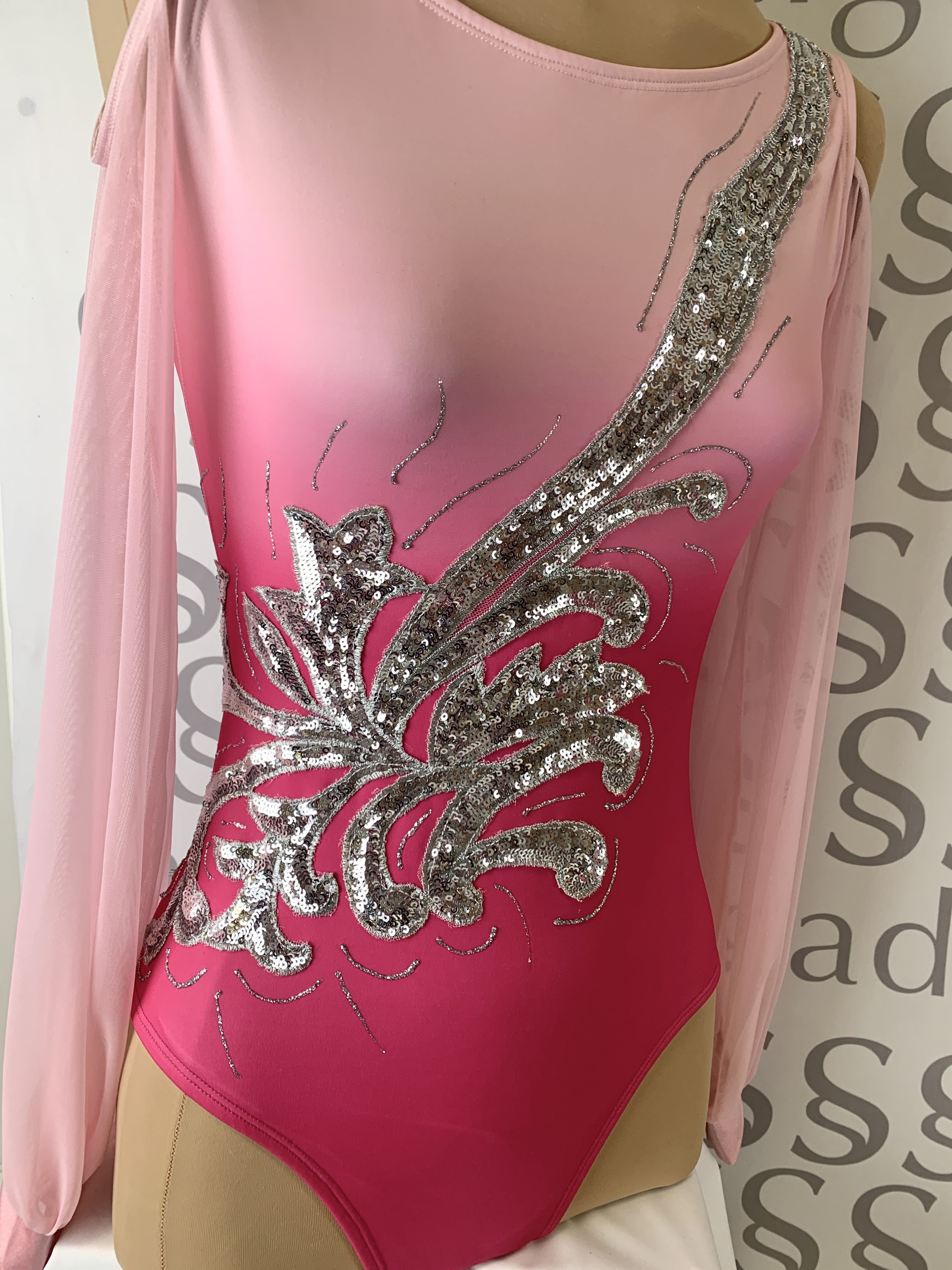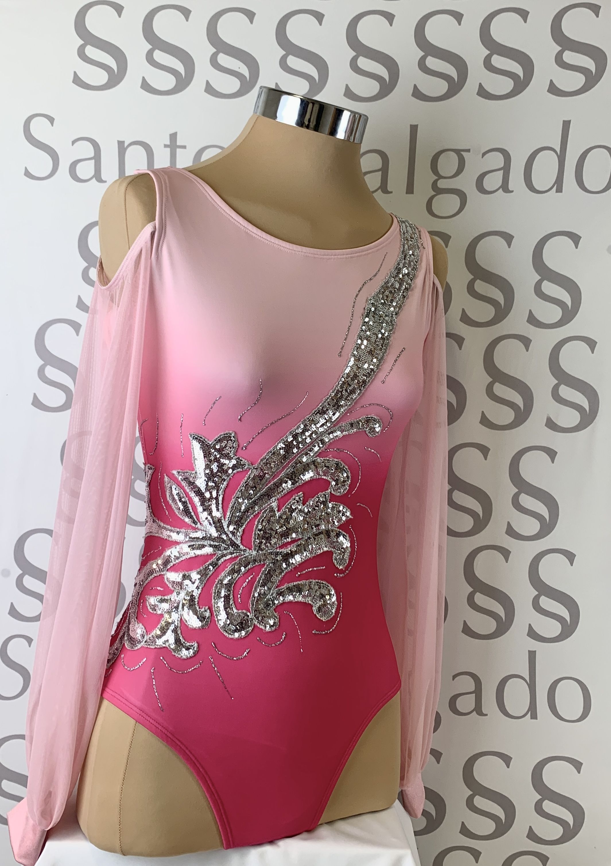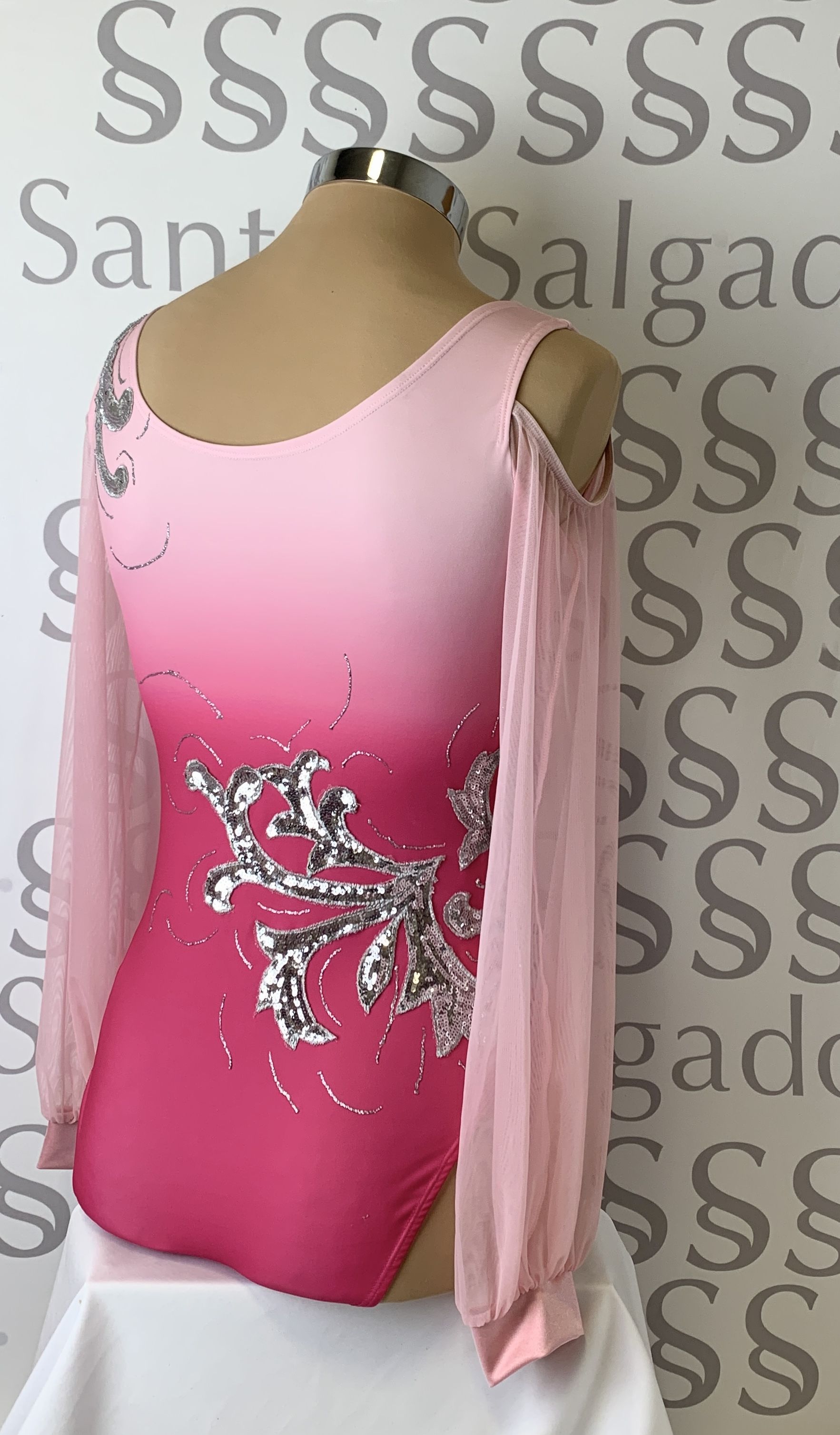 Body degradado en tonos de rosa con manga larga de gasa abullonada con puño y dejando llibre los hombros