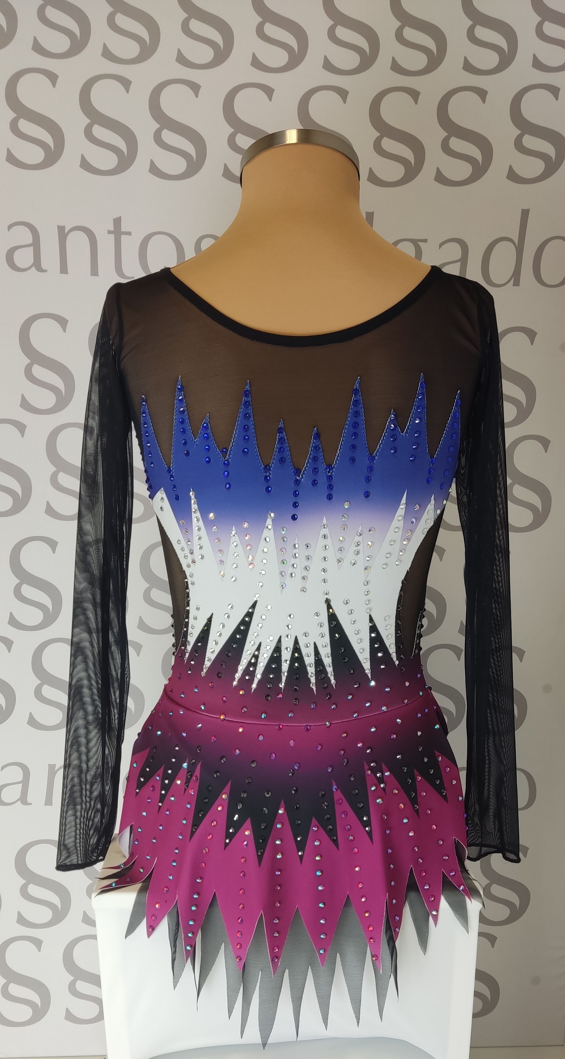 Maillot en gasa negra con degradé en picos en distintos tonos. Cristales ss20