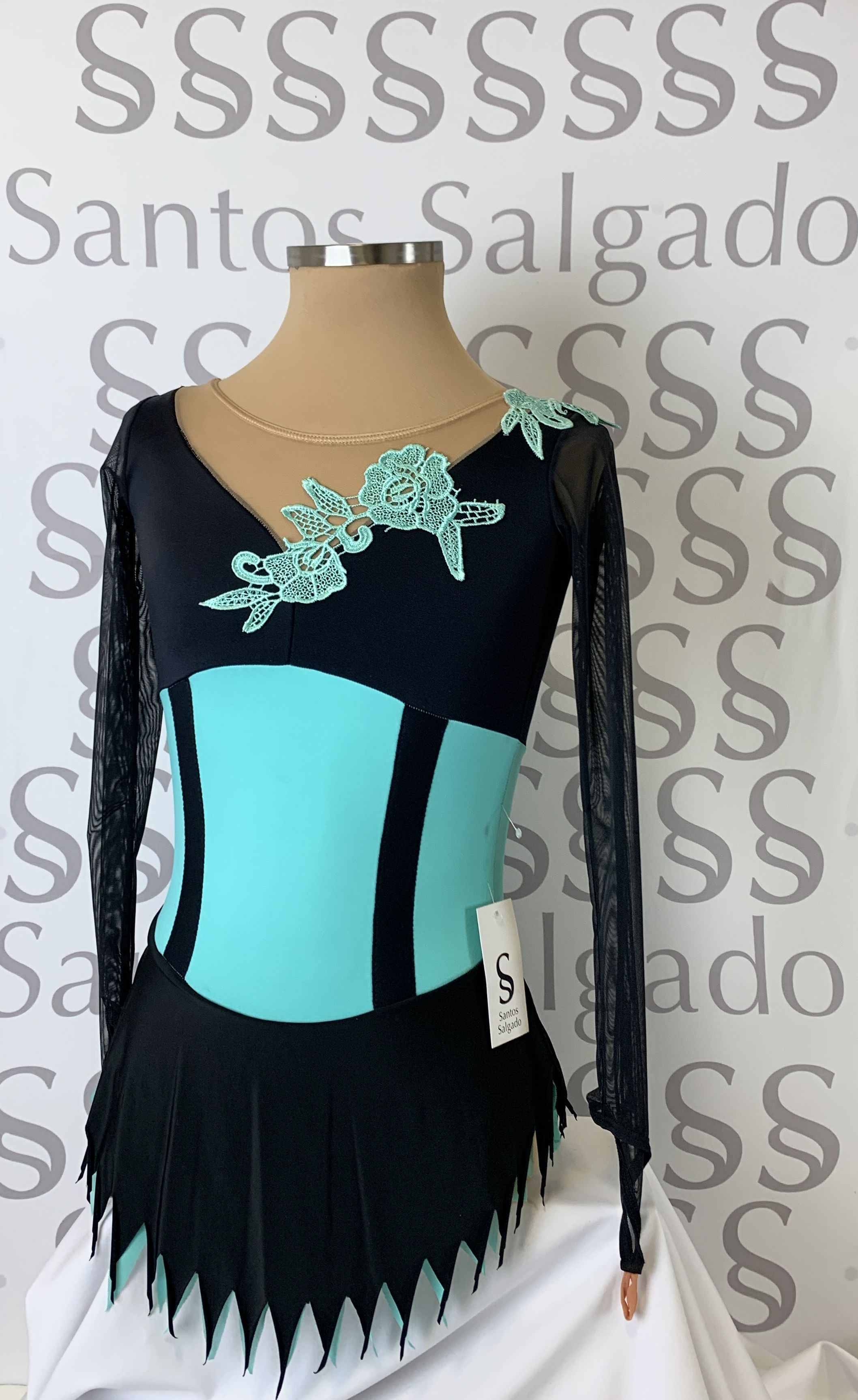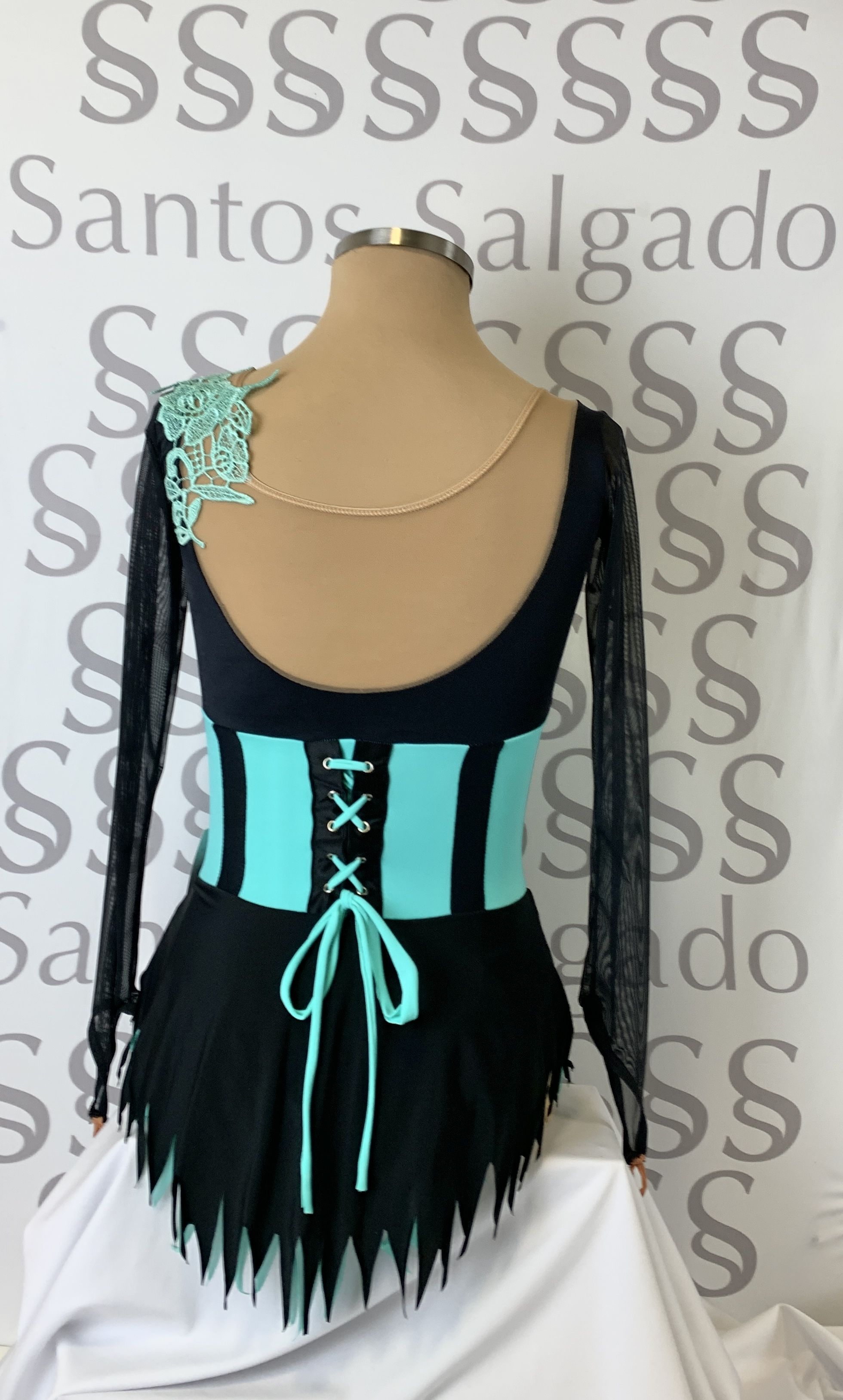 Detalle cinturón simulando corsé y aplique en el lateral y hombro a tono