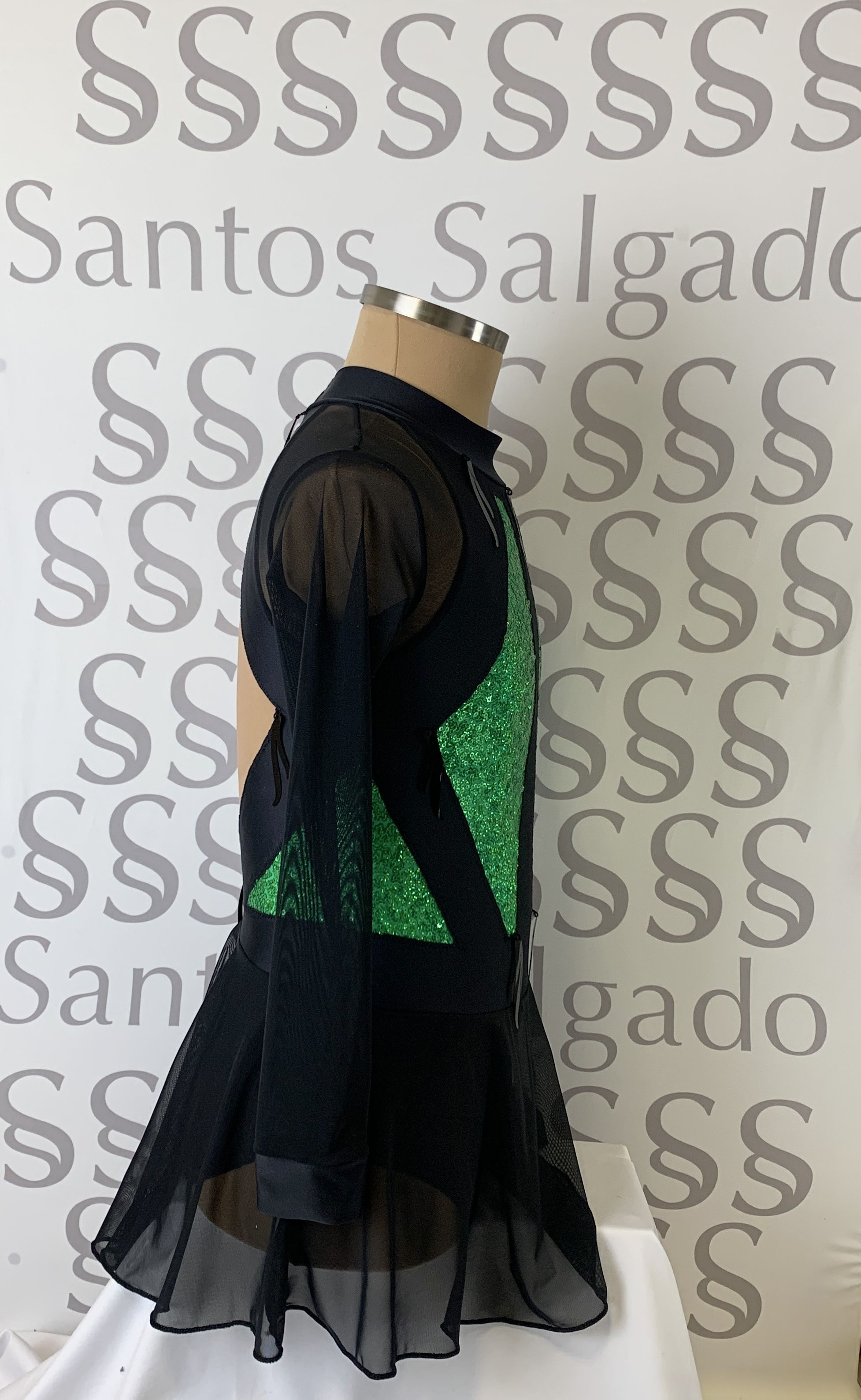 Detalle simulando celosía en delantero y laterales espalda en lentejuela a tono