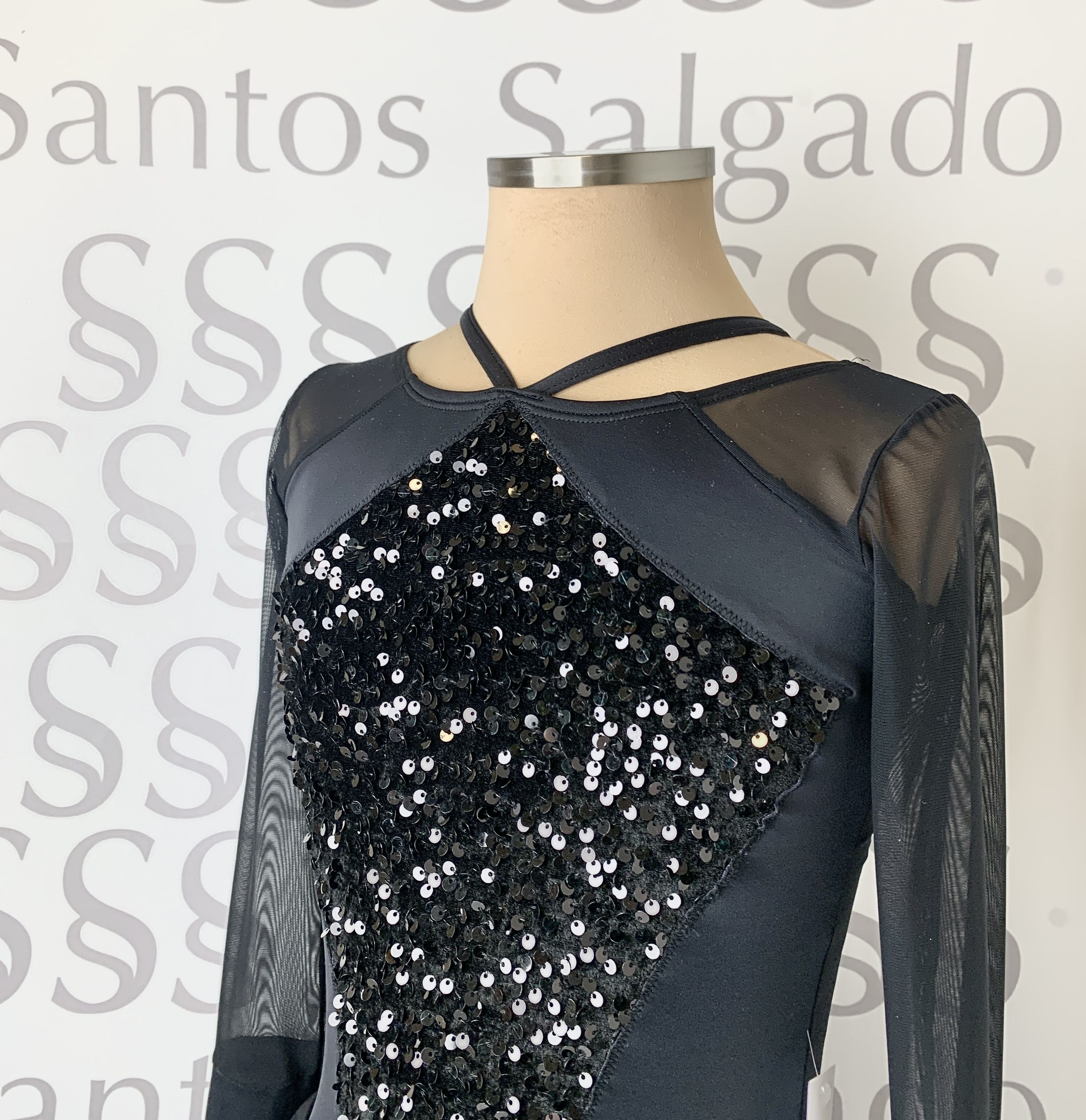 Detalle de aplicación en delantero y parte de la espalda con  terciopelo de lentejuela a tono