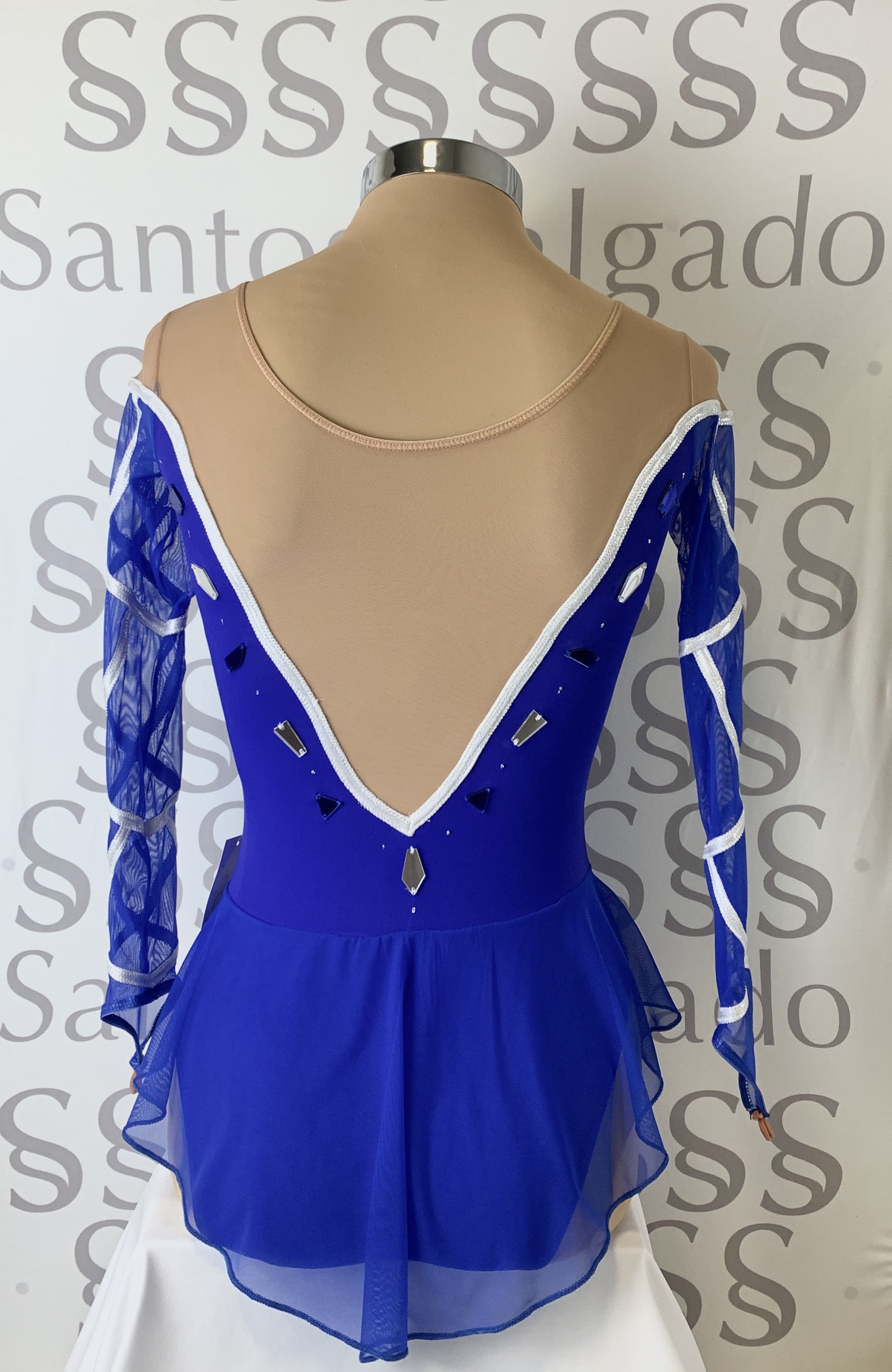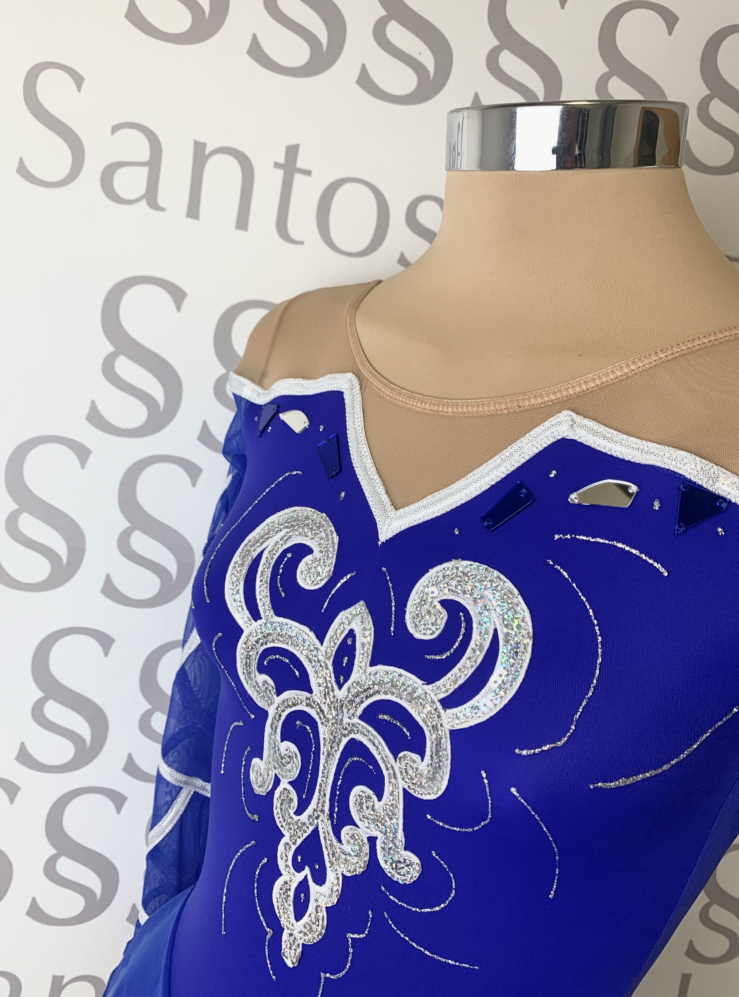 Detalle de vivos en color plata, espejos, aplicación de lentejuelas y purpurina 3D