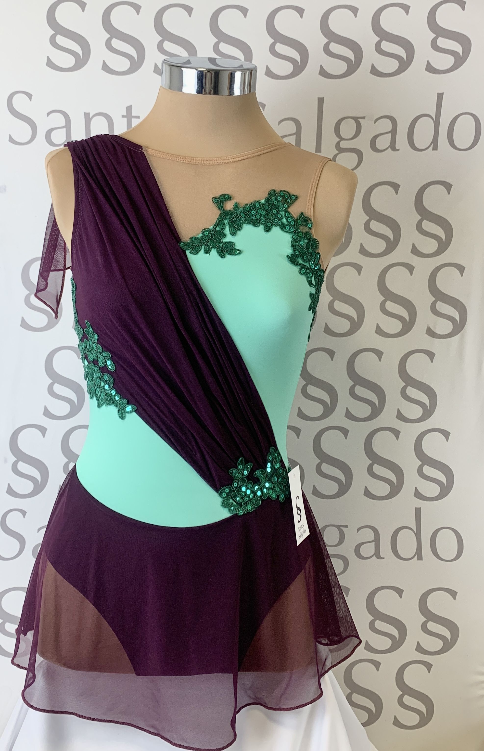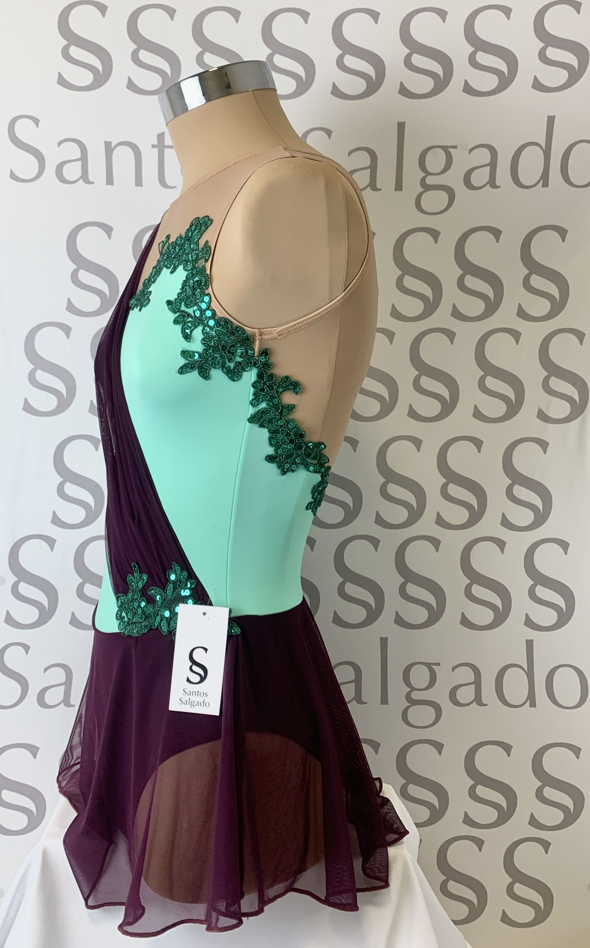 Talla 5 Maillot con falda de gasa. Franja drapeada de gasa de hombro a cadera en el delantero y espalda libre Detalle de bordados a tono en lateral, pecho y cadera