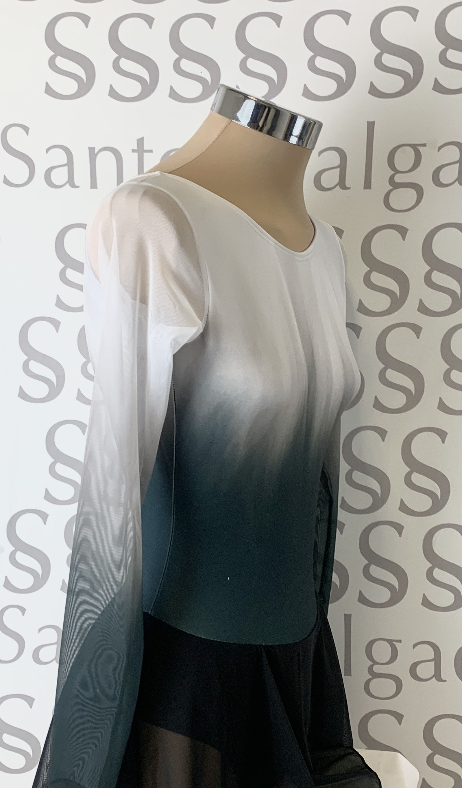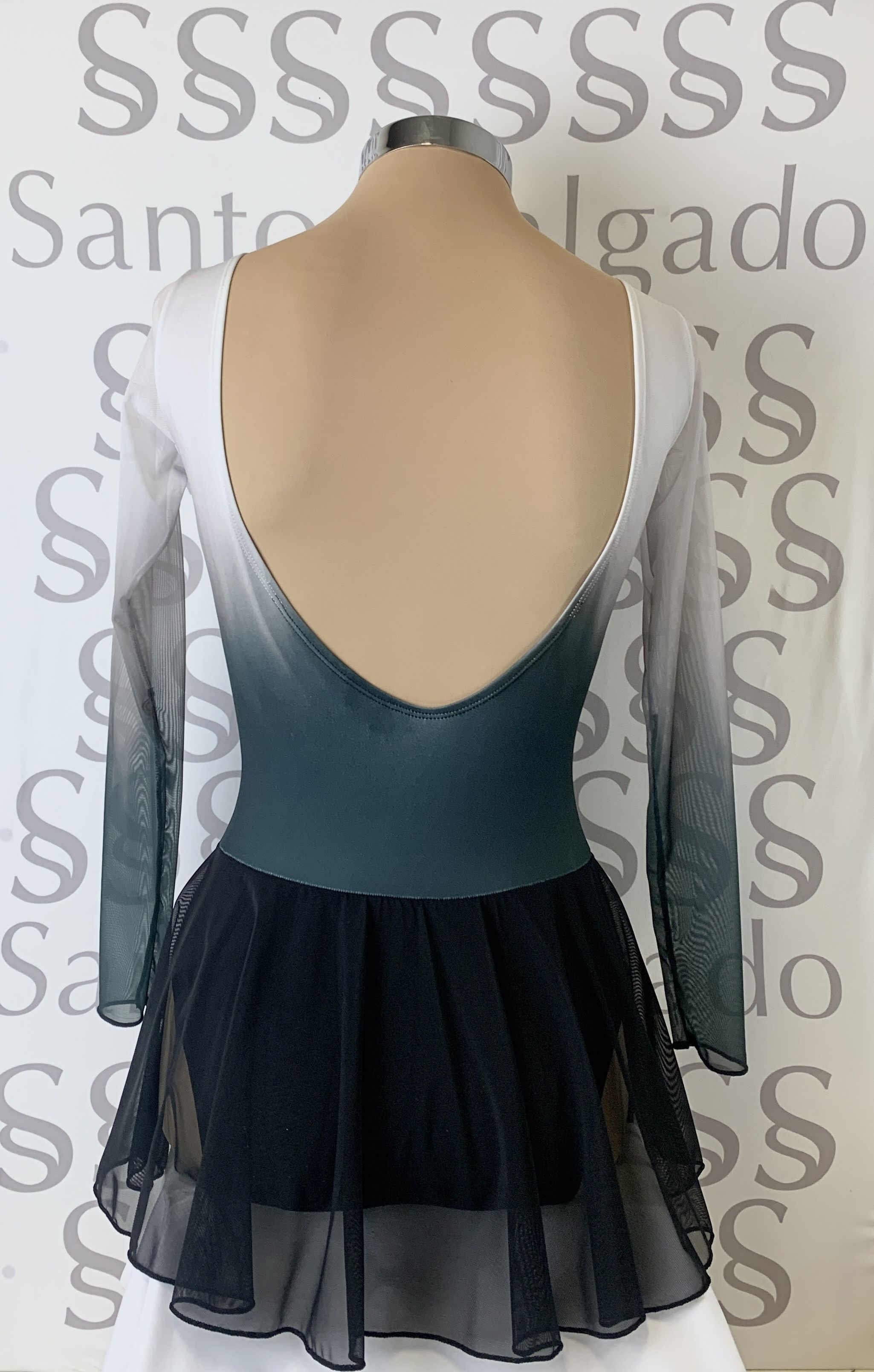 Maillot escote redondo y profundo en espalda con manga larga y falda de gasa.