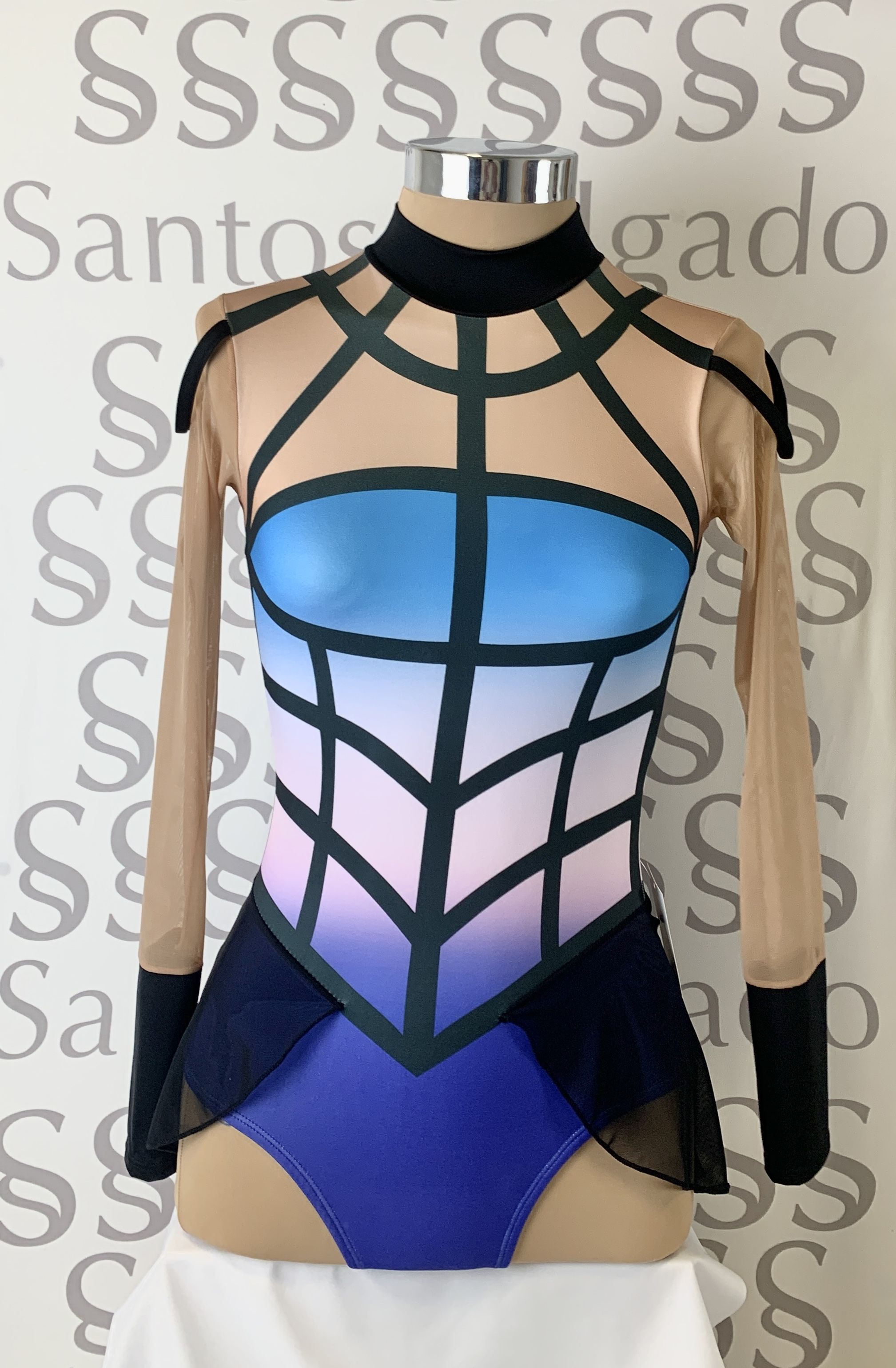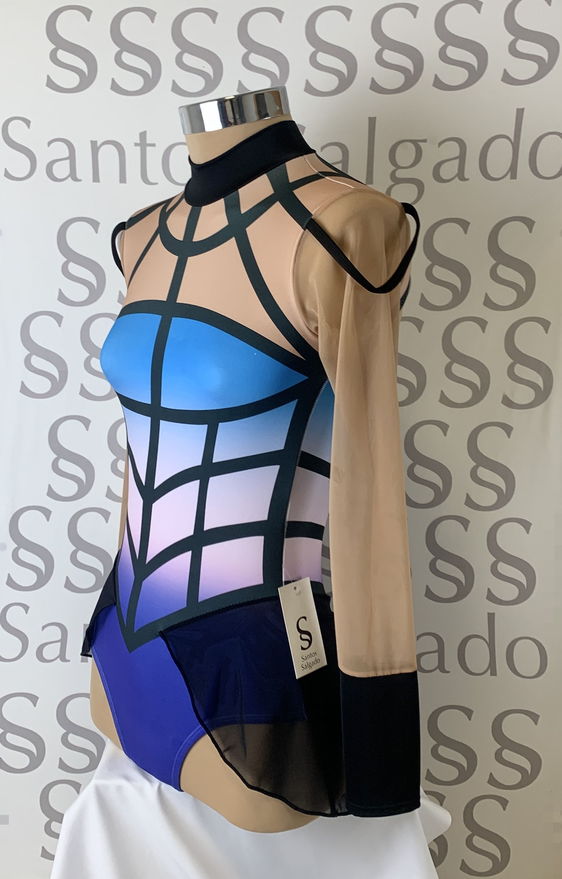 Maillot de cuello alto con falda no completa y manga larga con gran puño.